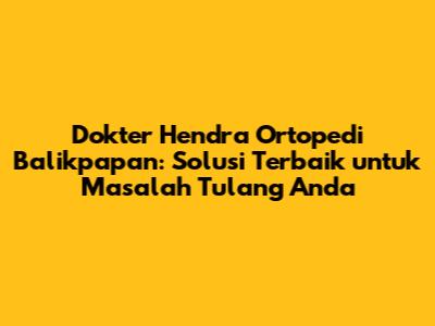Memiliki masalah dengan tulang dan persendian memang bisa sangat mengganggu aktivitas sehari-hari. Apalagi jika Anda tinggal di Balikpapan dan kesulitan mencari dokter ortopedi yang tepat. Nah, jangan khawatir! Artikel ini akan membahas secara lengkap tentang Dokter Hendra Ortopedi Balikpapan, seorang ahli ortopedi yang bisa menjadi solusi terbaik untuk masalah tulang Anda.