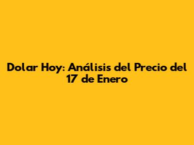 Dolar Hoy: Análisis Del Precio Del 17 De Enero