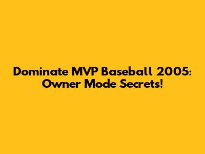 Dominate MVP Baseball 2005: Owner Mode Secrets!