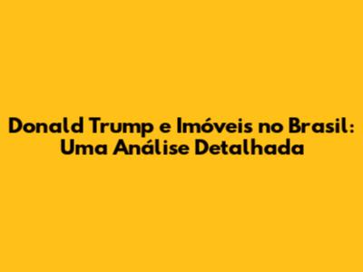 Donald Trump E Imóveis No Brasil: Uma Análise Detalhada