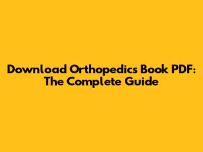 Download Orthopedics Book PDF: The Complete Guide