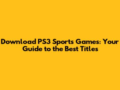 Download PS3 Sports Games: Your Guide To The Best Titles