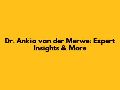 Dr. Ankia Van Der Merwe: Expert Insights & More