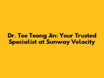 Hey guys! Are you looking for a top-notch specialist in Sunway Velocity? Let's dive into everything you need to know about Dr. Tee Teong Jin, a highly respected and experienced medical professional serving the community. This article will provide a comprehensive overview of Dr. Tee, his expertise, the services offered, and how to connect with him. We're breaking it all down, so you'll have a clear picture of why Dr. Tee Teong Jin might be the perfect healthcare provider for you. So, let's get started!