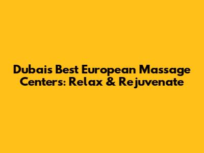 Dubai's Best European Massage Centers: Relax & Rejuvenate