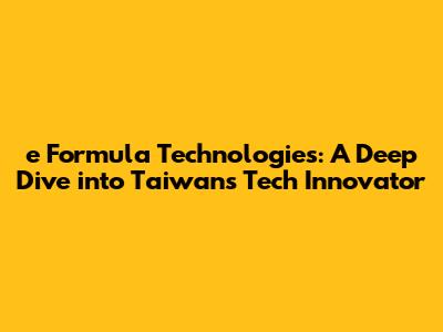 E Formula Technologies: A Deep Dive Into Taiwan's Tech Innovator