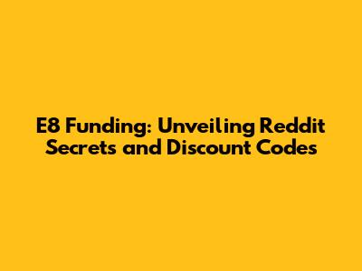 E8 Funding: Reddit Secrets And Discount Codes