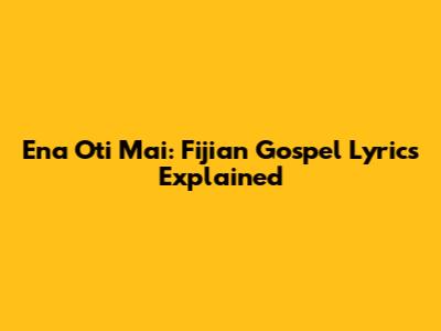 Ena Oti Mai: Fijian Gospel Lyrics Explained