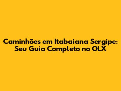 Encontre Caminhões Em Itabaiana, Sergipe: Guia Completo No OLX