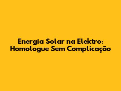 Energia Solar Na Elektro: Homologue Sem Complicação