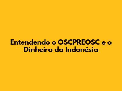 Entendendo O OSCPREOSC E O Dinheiro Da Indonésia