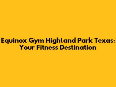 Equinox Gym Highland Park Texas: Your Fitness Destination