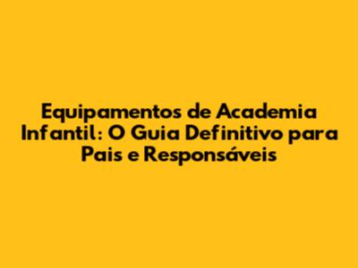 Equipamentos De Academia Infantil: Guia Completo Para Pais