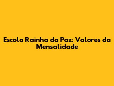 Escola Rainha Da Paz: Valores Da Mensalidade