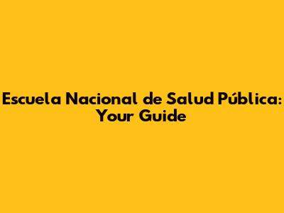Escuela Nacional De Salud Pública: Your Guide