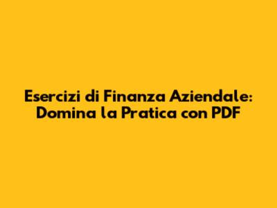 Esercizi Di Finanza Aziendale: Domina La Pratica Con PDF