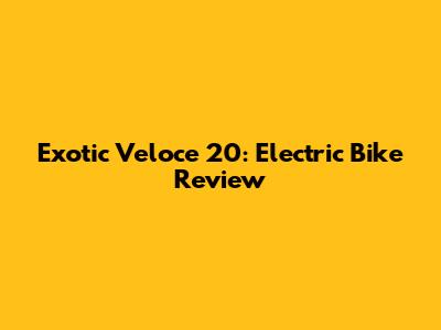 Exotic Veloce 20: Electric Bike Review