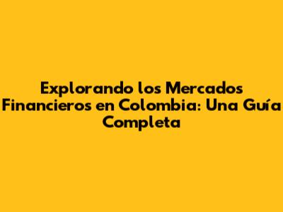 Explorando Los Mercados Financieros En Colombia: Una Guía Completa