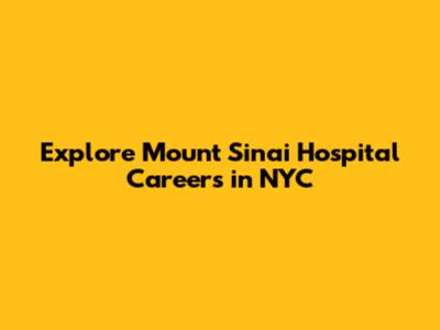 Explore Mount Sinai Hospital Careers In NYC