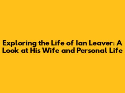 Exploring The Life Of Ian Leaver: A Look At His Wife And Personal Life