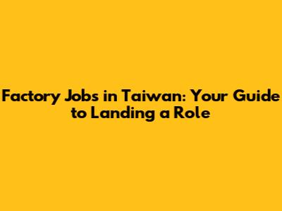 Factory Jobs In Taiwan: Your Guide To Landing A Role