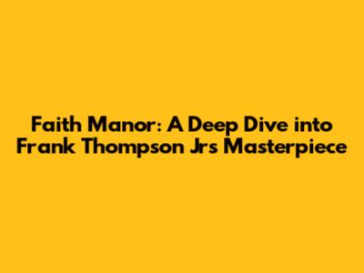 Faith Manor: A Deep Dive Into Frank Thompson Jr's Masterpiece