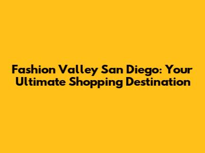 Fashion Valley San Diego: Your Ultimate Shopping Destination