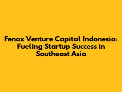 Fenox Venture Capital Indonesia: Funding Southeast Asia's Future