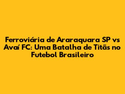 Ferroviária De Araraquara SP Vs Avaí FC: Análise Completa