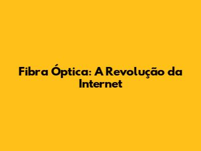Fibra Óptica: A Revolução Da Internet