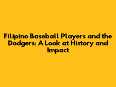 Hey baseball fanatics! Ever wondered about the connection between Filipino baseball players and the iconic Los Angeles Dodgers? Well, buckle up, because we're diving deep into the history, the players, and the impact these athletes have made on the sport. The Dodgers, with their rich history and global reach, have opened their doors to talent from all over the world, and that includes some incredibly talented Filipino ballplayers. Let's explore how these players have carved their names into the Dodgers' legacy and what it means for baseball in the Philippines.