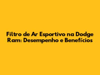 Filtro De Ar Esportivo Na Dodge Ram: Guia Completo