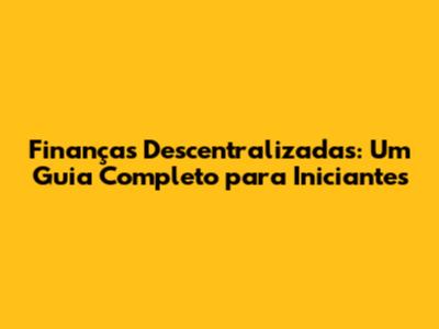 Finanças Descentralizadas: Guia Completo Para Iniciantes