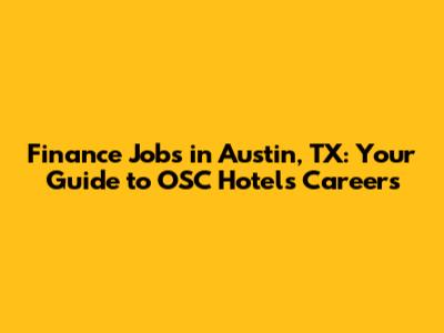 Hey everyone! Are you on the hunt for finance jobs in Austin, TX? Well, you've come to the right place! Austin's booming economy has created a ton of opportunities, and if you're interested in the hospitality industry, particularly with OSC Hotels, you're in for a treat. This guide will walk you through everything you need to know about finding and landing those sweet finance jobs in Austin with OSC Hotels. We'll cover what OSC Hotels is all about, the types of finance roles they offer, the skills you'll need, how to apply, and even some insider tips to boost your chances. So, grab a coffee, settle in, and let's dive into the exciting world of finance careers in Austin with OSC Hotels!