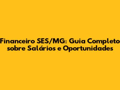 Financeiro SES/MG: Tudo Sobre Salários E Oportunidades