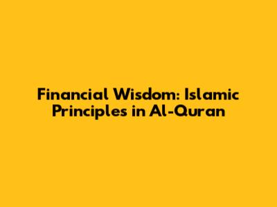 Financial Wisdom: Islamic Principles In Al-Quran