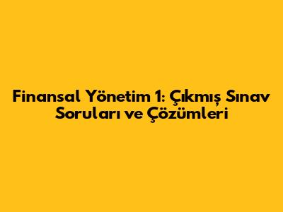 Şimdi, finansal yönetim 1 dersine ait çıkmış sınav sorularından bazılarını inceleyelim ve bu soruların nasıl çözüldüğünü adım adım görelim. Bu örnekler, sınavlara hazırlanırken size yol gösterecek ve konuları daha iyi anlamanıza yardımcı olacaktır.