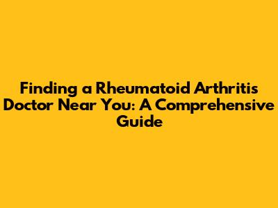 Finding the right rheumatoid arthritis doctor near you is an important step in managing your condition and improving your quality of life. I hope this guide helps you navigate the process with confidence. Remember, you're not alone in this. RA can be challenging, but with the right care and support, you can live a full and active life.