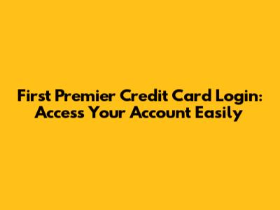 First Premier Credit Card Login: Access Your Account Easily