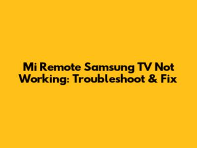 Fix Mi Remote Not Working With Samsung TV