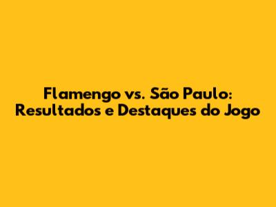 Flamengo Vs. São Paulo: Resultados E Destaques Do Jogo