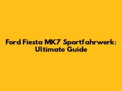 Ford Fiesta MK7 Sportfahrwerk: Ultimate Guide