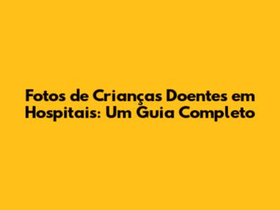 Fotos De Crianças Doentes Em Hospitais: Um Guia Completo