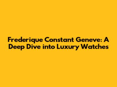 Frederique Constant Geneve: A Deep Dive Into Luxury Watches