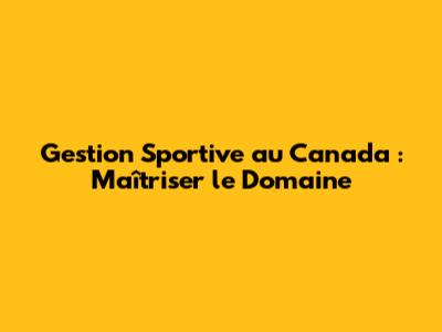 Gestion Sportive Au Canada : Maîtriser Le Domaine