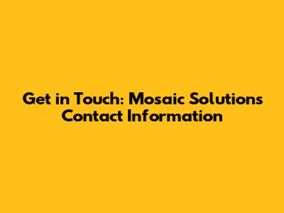 Get In Touch: Mosaic Solutions Contact Information