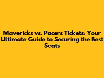 Get Mavericks Vs Pacers Tickets: Your Complete Guide