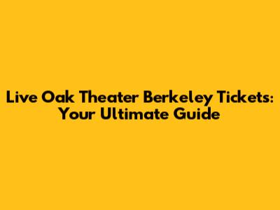Get Your Live Oak Theater Berkeley Tickets Now!