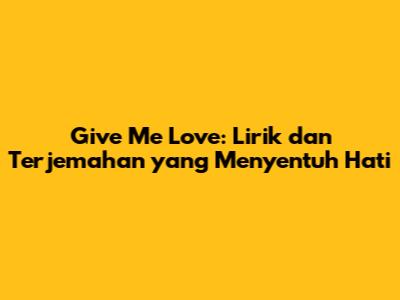 Give Me Love: Lirik Dan Terjemahan Yang Menyentuh Hati