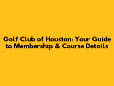 Unveiling the Golf Club of Houston: A Premier Golfing Experience